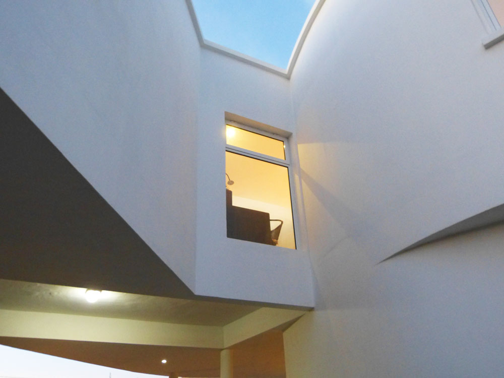 Trabajamos sobre un nuevo complejo turístico de tres viviendas de alquiler más una vivienda para los propietarios. Nuestra mirada buscó lo inerte, lo que no tiene vida ni puede morir, lo eterno de las grutas reinventadas una y otra vez por el viento y el océano Atlántico. Los volúmenes rocosos de las viviendas se apilan y se apoyan unos sobre otros, dejando huecos o patios donde poder preparar un buen cordero patagónico, charlar con los otros inquilinos sobre el clima, la ruta, jugar a las cartas, tomar mate, mirar el cielo por las noches, negro de estrellas.